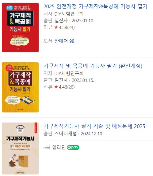 ※가구제작기능사 필기시험은 2025년 총 2번 있습니다. 필기 기회가 2회 있으니 부족하시더라도 기능사 2회